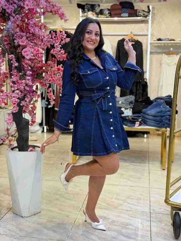 Long Sleeve Belted Short Jeans Dress