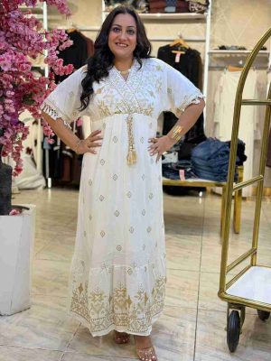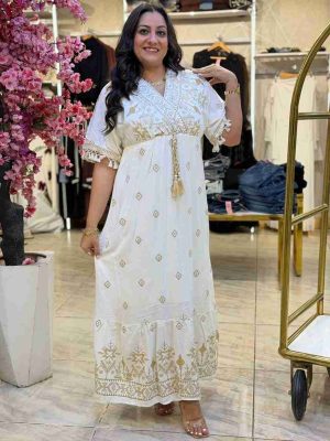 Short Sleeve Plaid White Long Dress