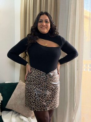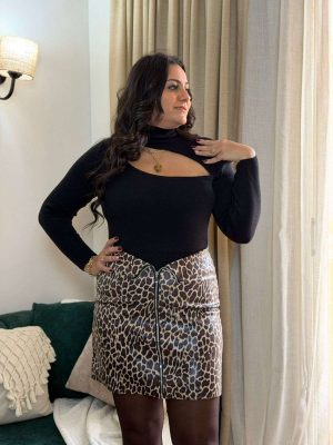 Black Long Sleeve Half Leather Front Zipper Short Dress