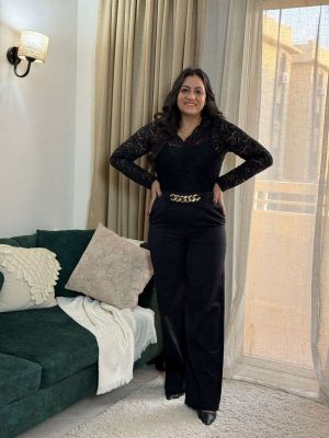 توب سادة ياقة مفتوحة كم طويل