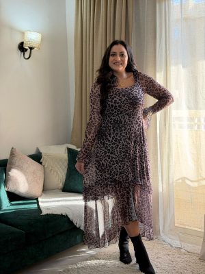 Long Sleeve Tiger Long Ruffles Dress