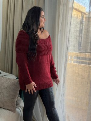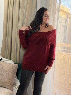 Long Sleeve Plain Color Off Shoulder Top
