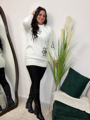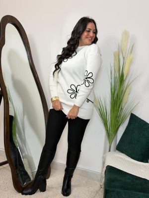 بلوزة قطيفة بوردة بيضاء على الصدر