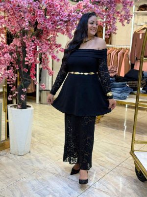 فستان طويل بأكمام طويلة وهاى كوول مع لولى