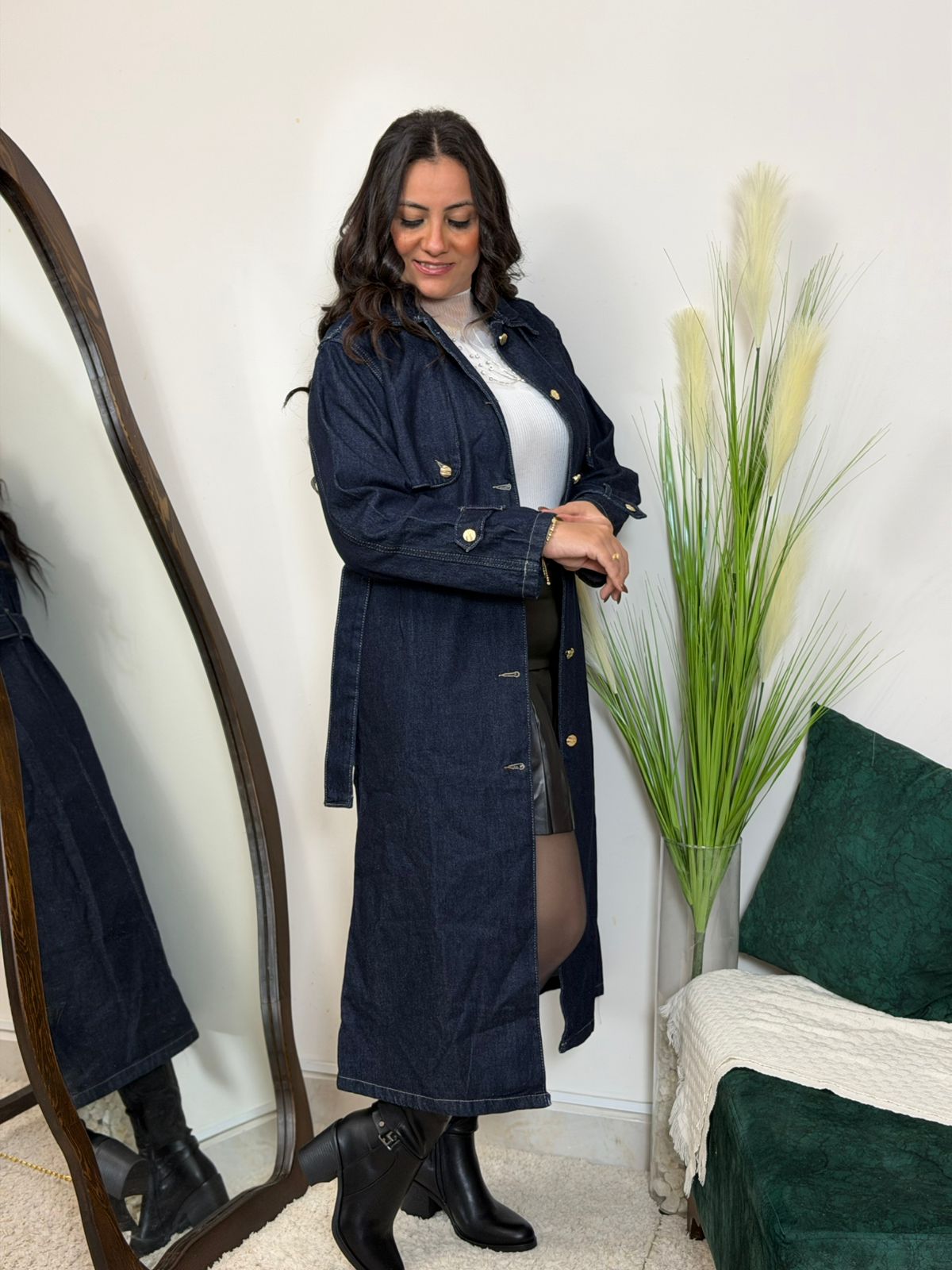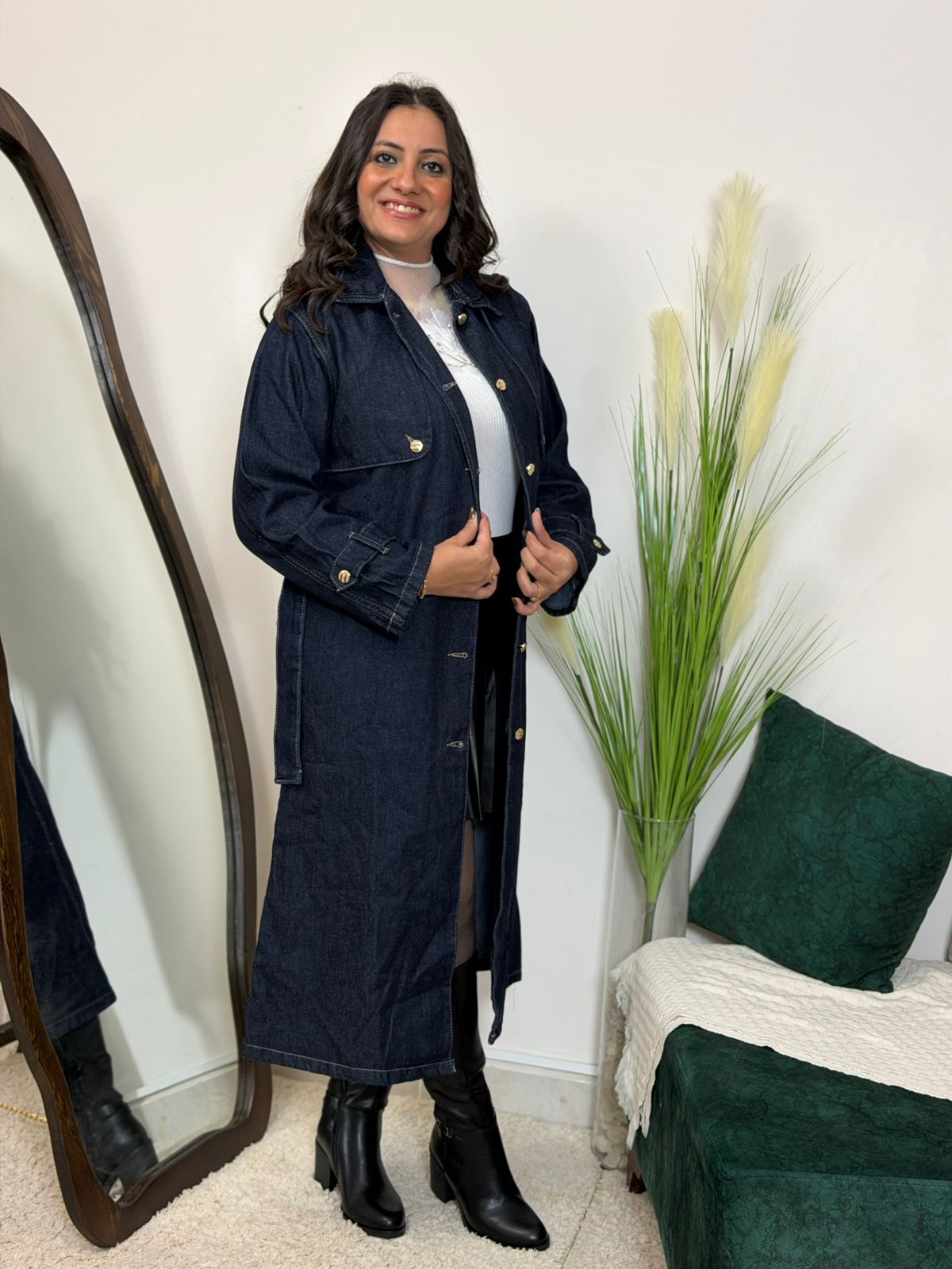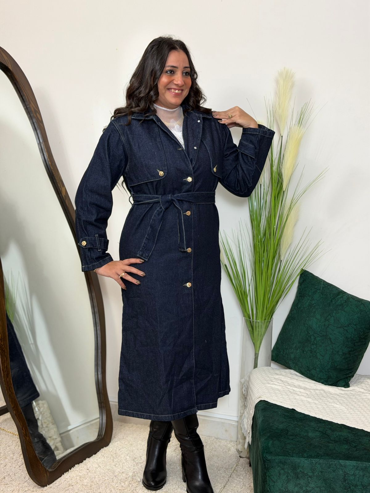 Long Sleeve Front Buttons Long Jeans Dress