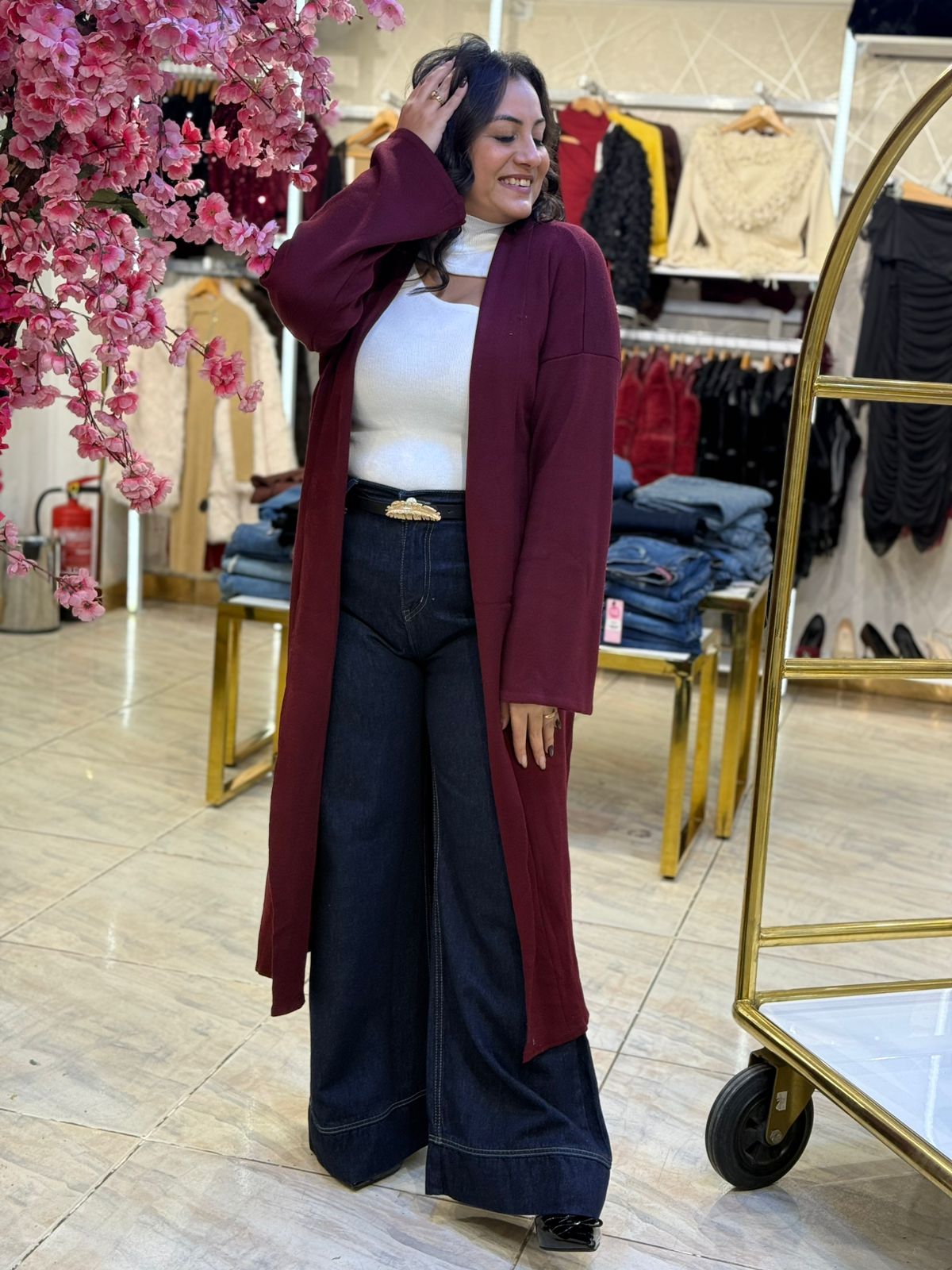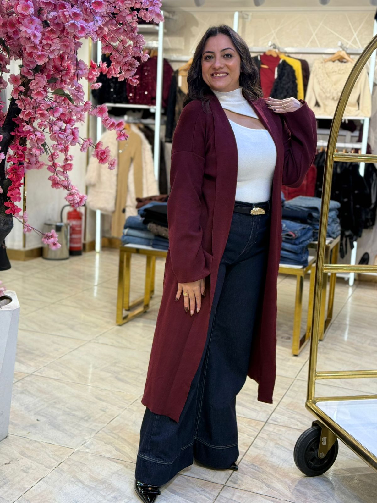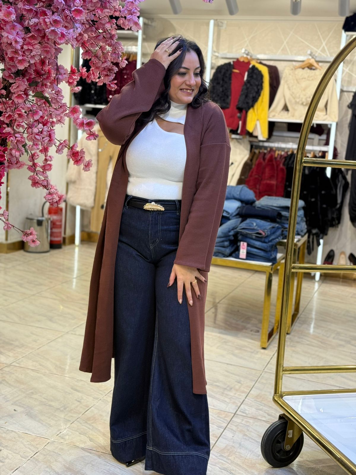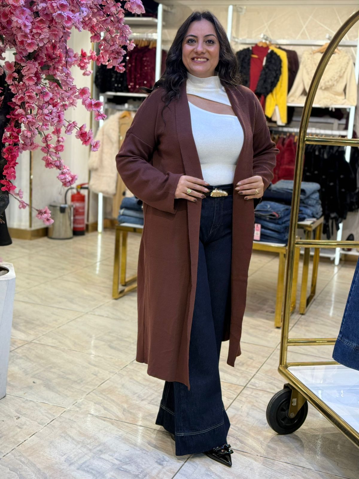 Long Sleeve Plain Color Long Cardigan