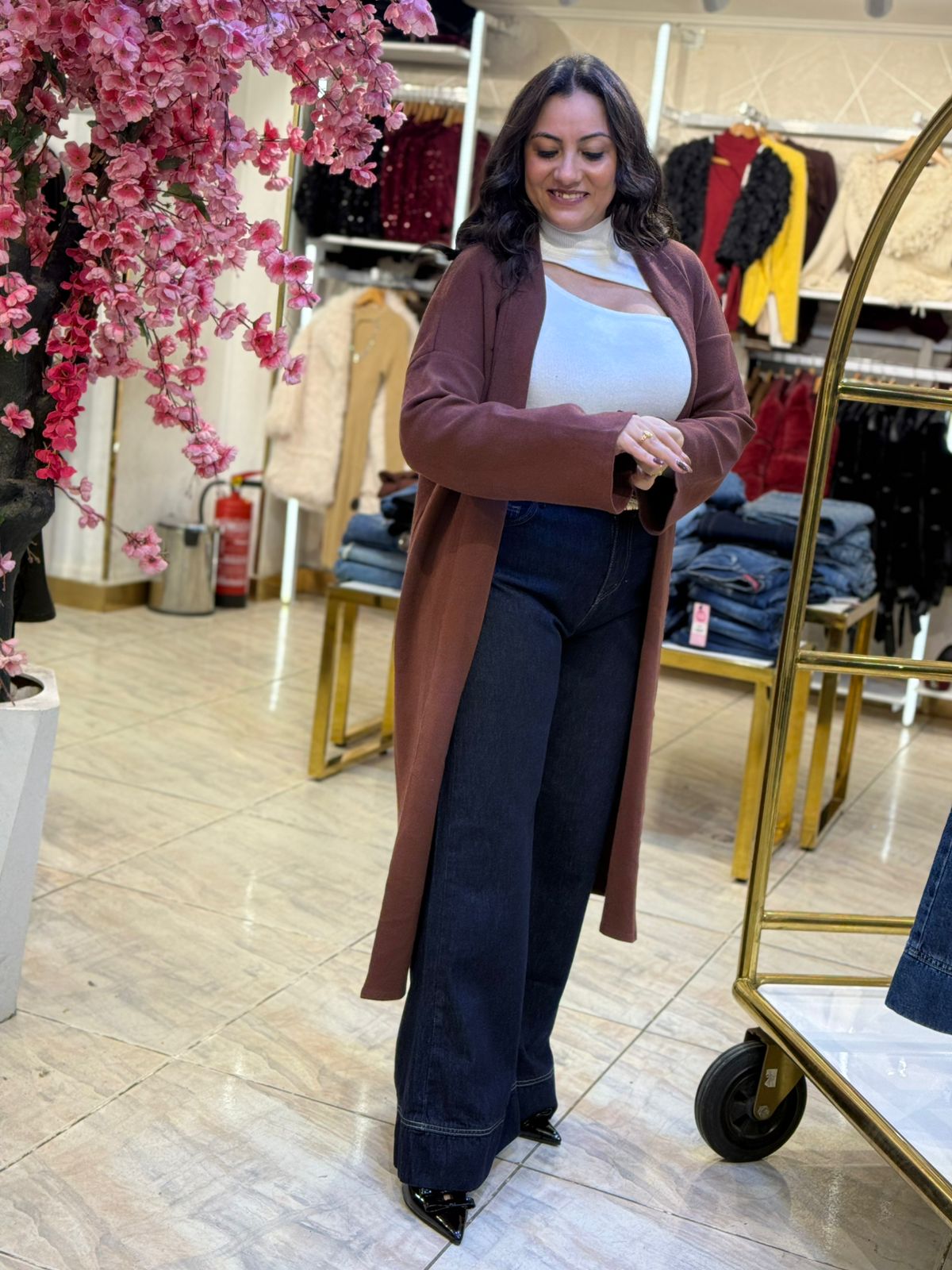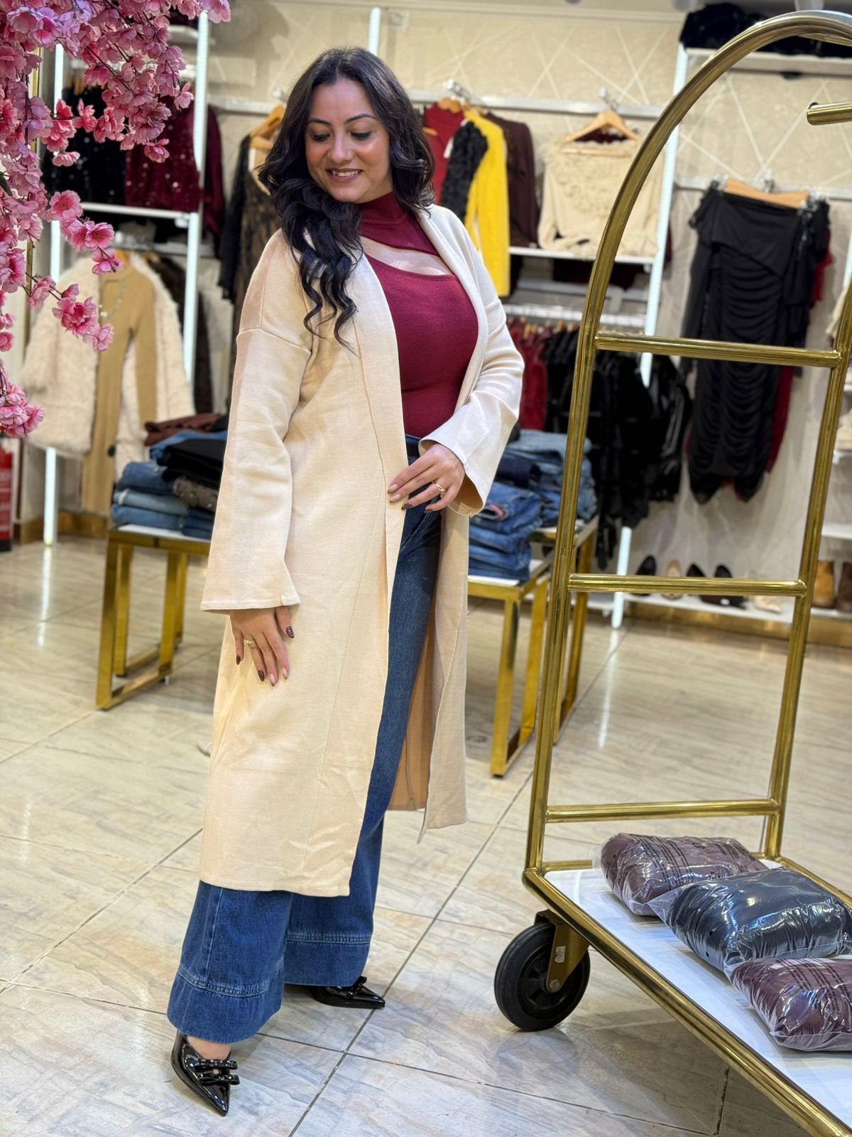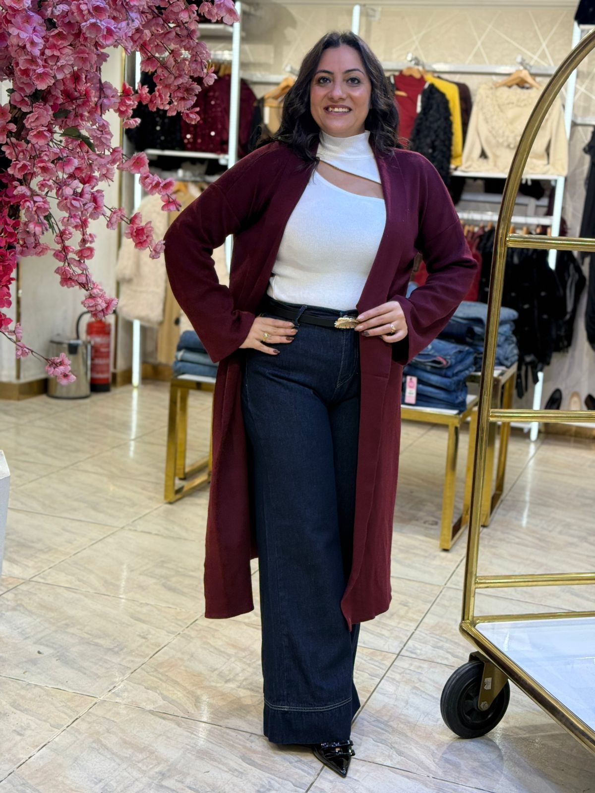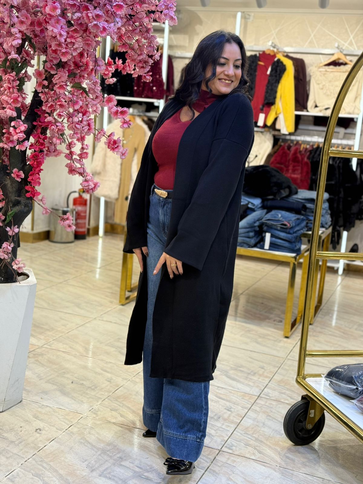Long Sleeve Plain Color Long Cardigan