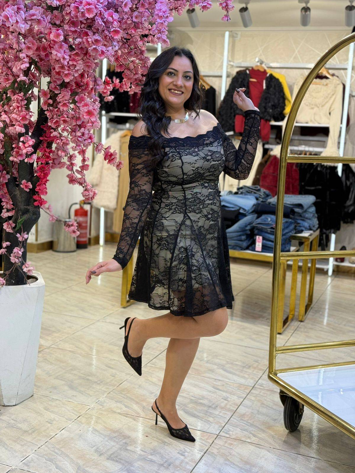 Off Shoulder Guipure Lined Dress with a Rose Pattern