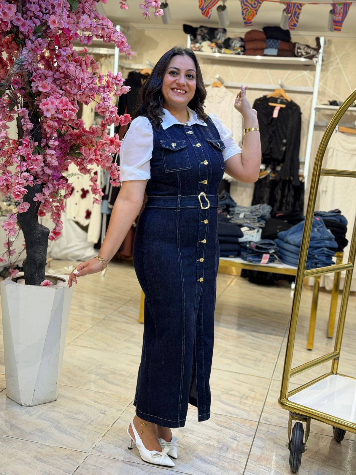 Sleeveless Front Buttons Long Jeans Dress