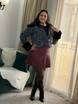 Short Black Skirt with Gold-shaped Buttons