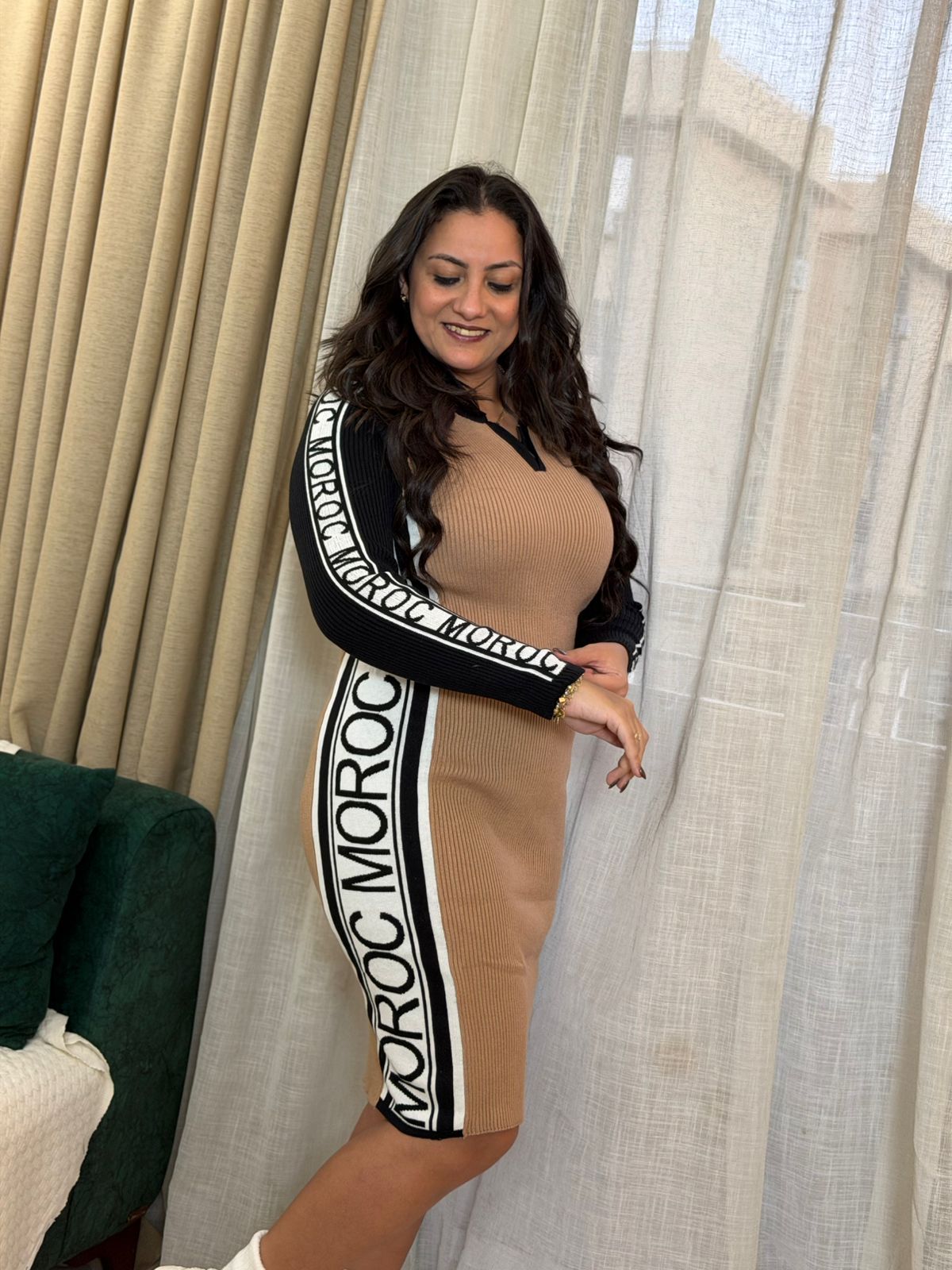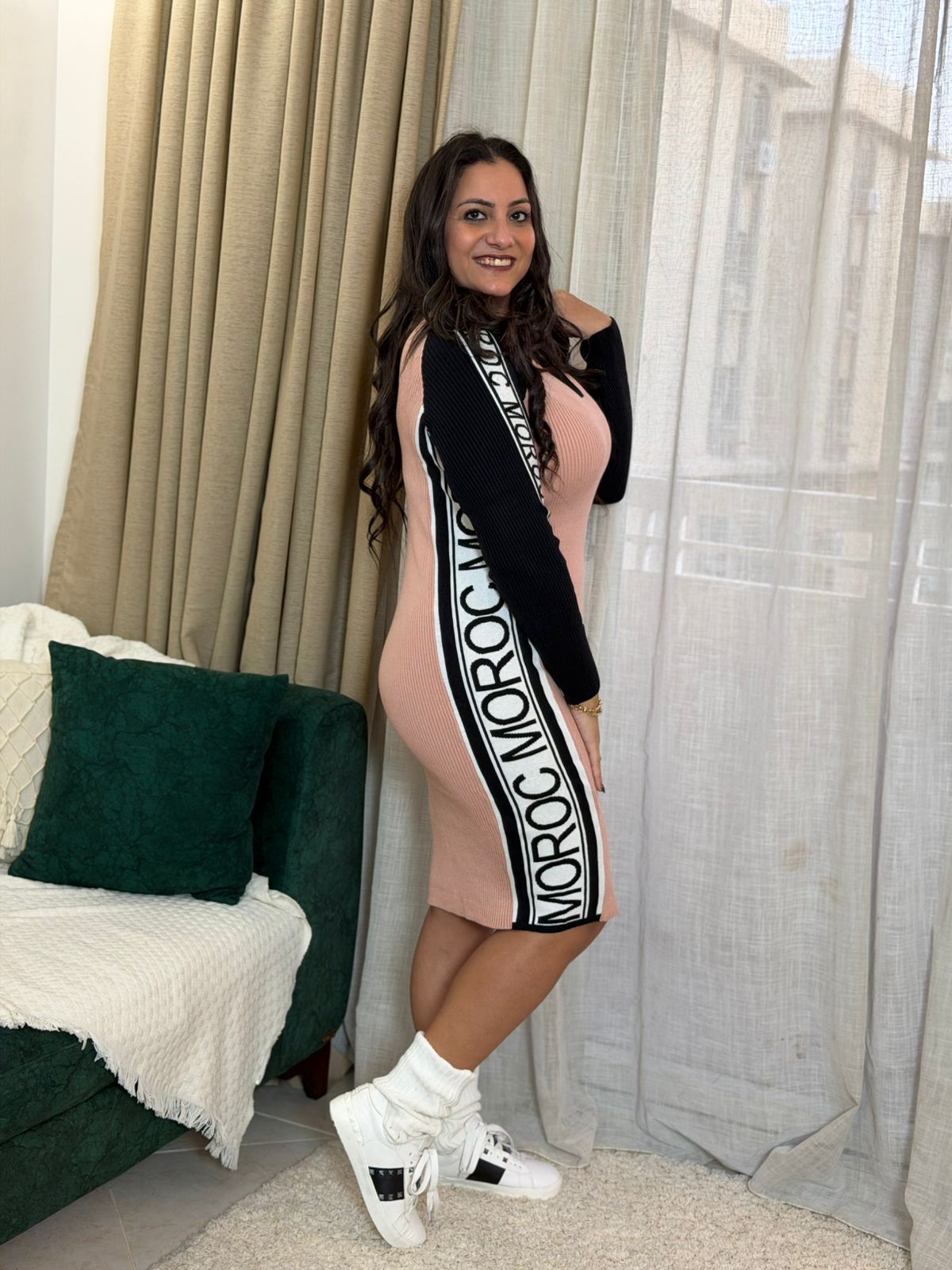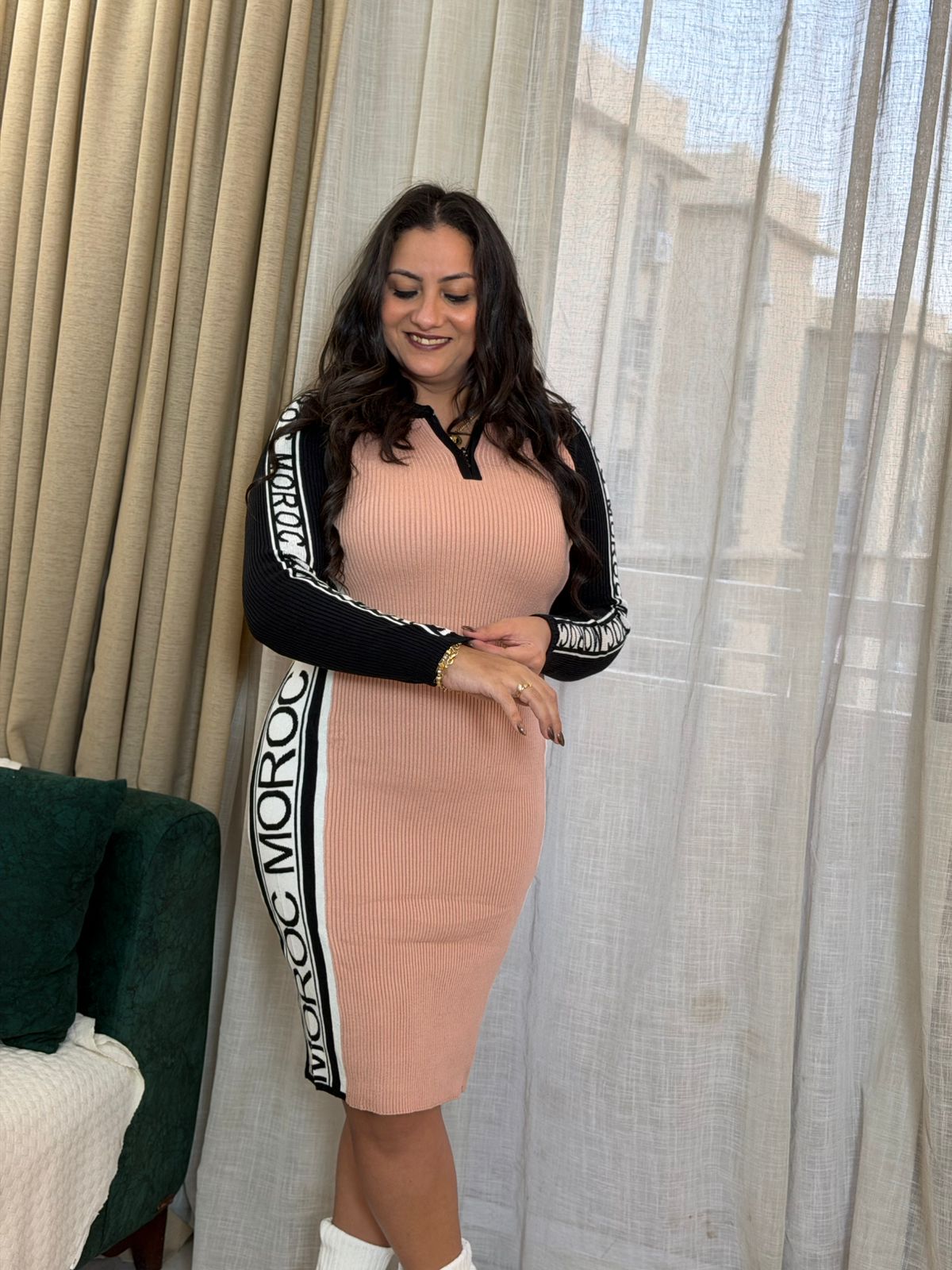 Long Sleeve Colorful Short Dress