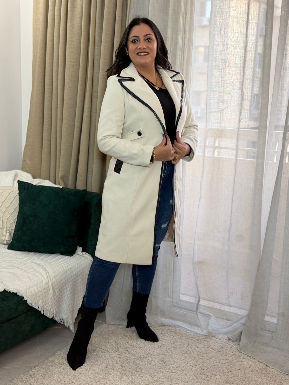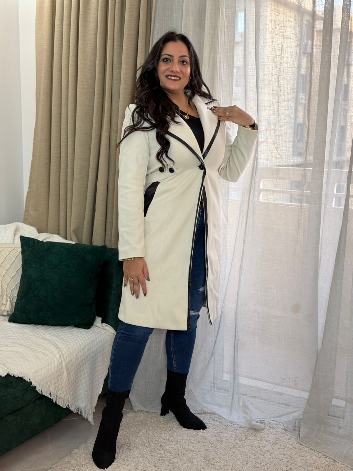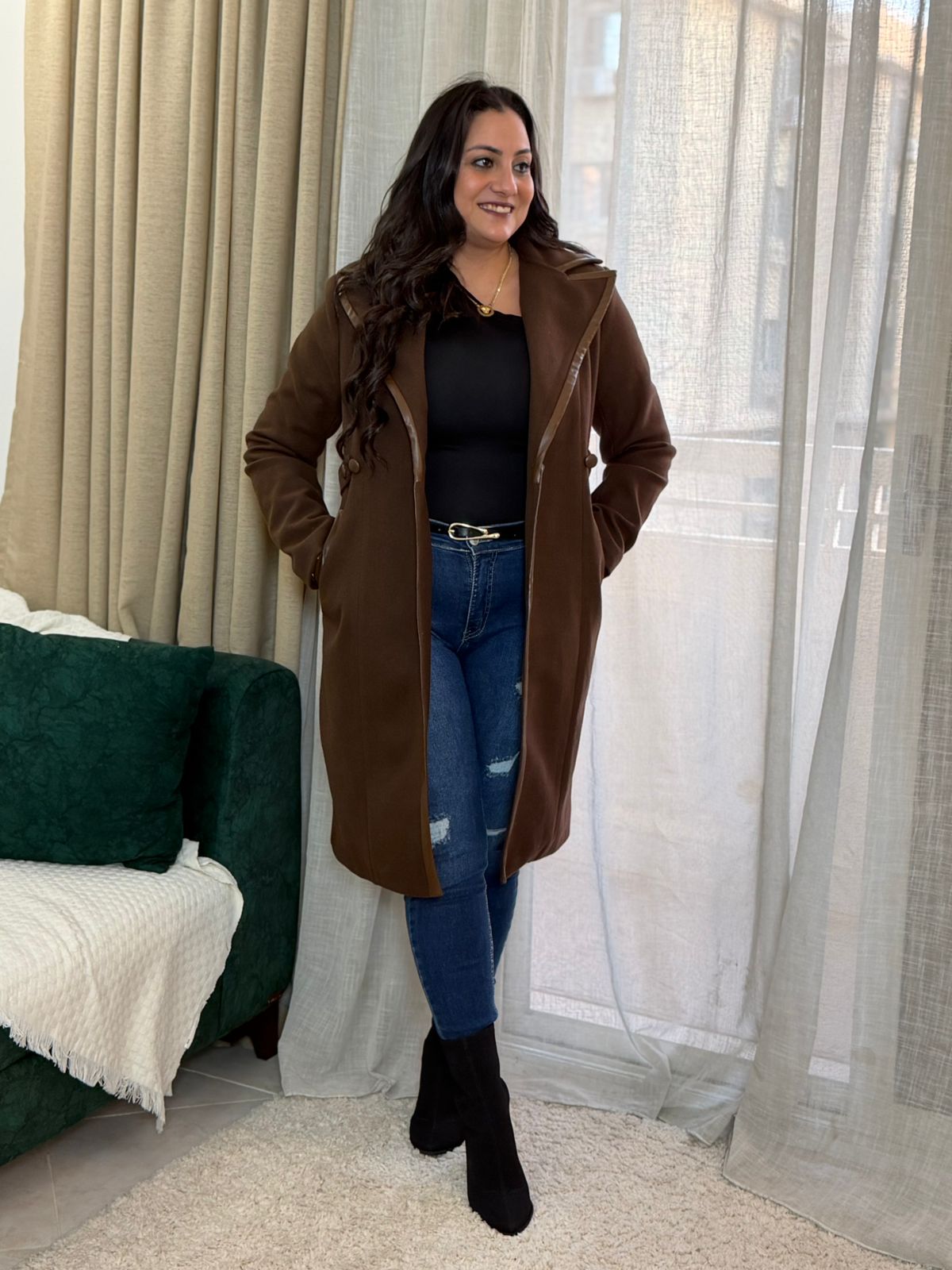 Long Sleeve Leather Pockets & Buttons Long Jacket