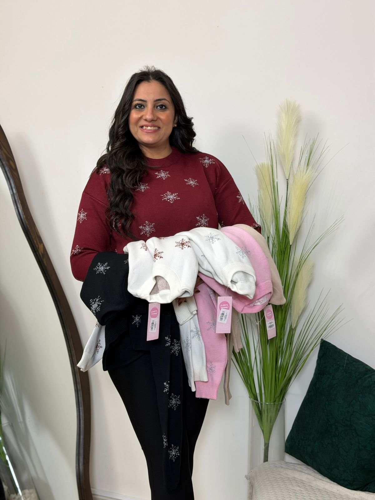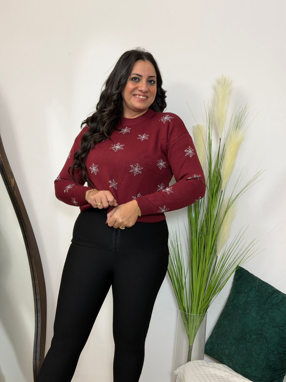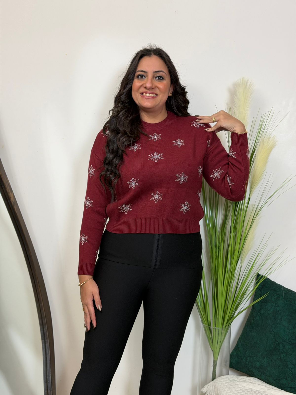 Long Sleeve Snow Flakes Plain Color Pullover