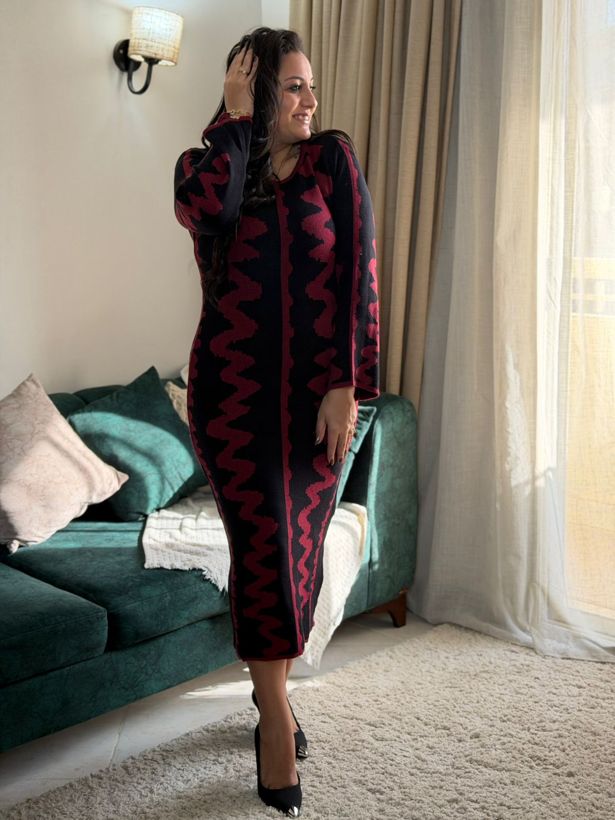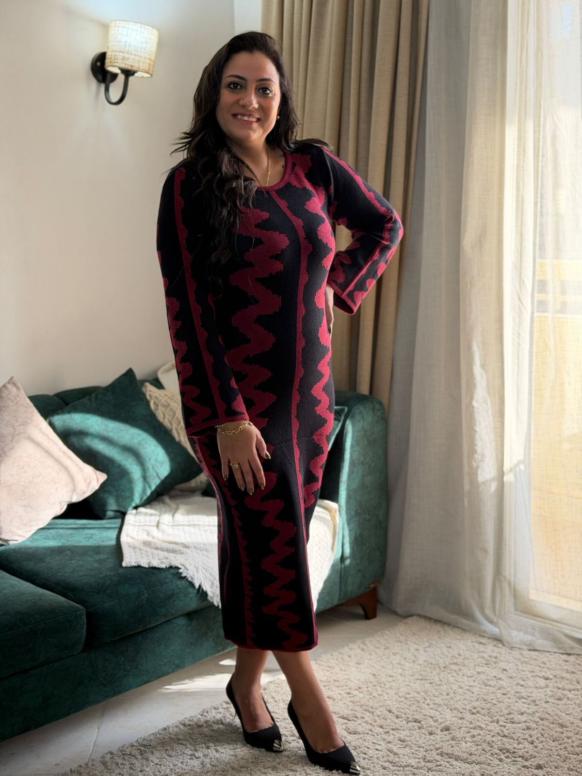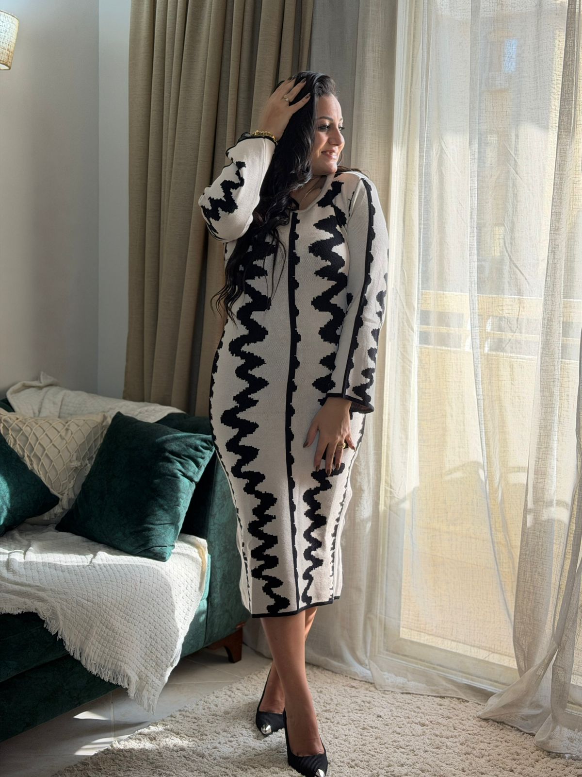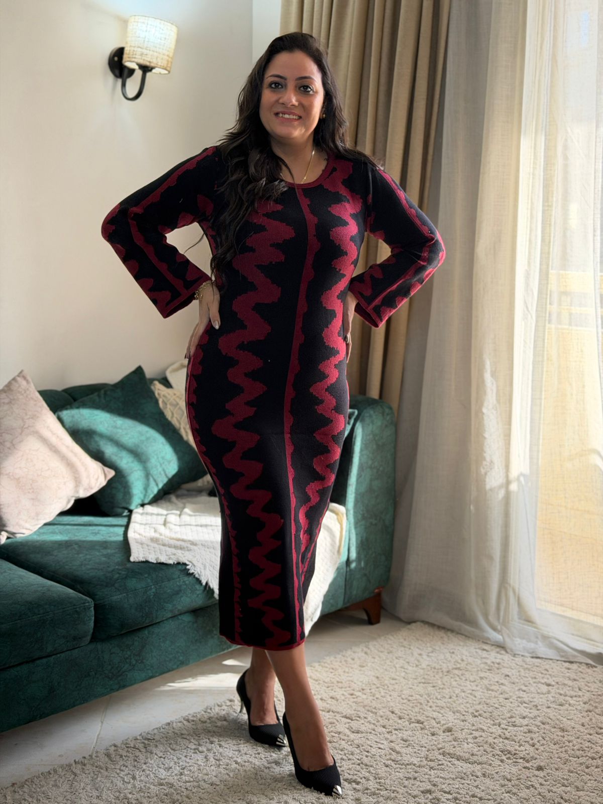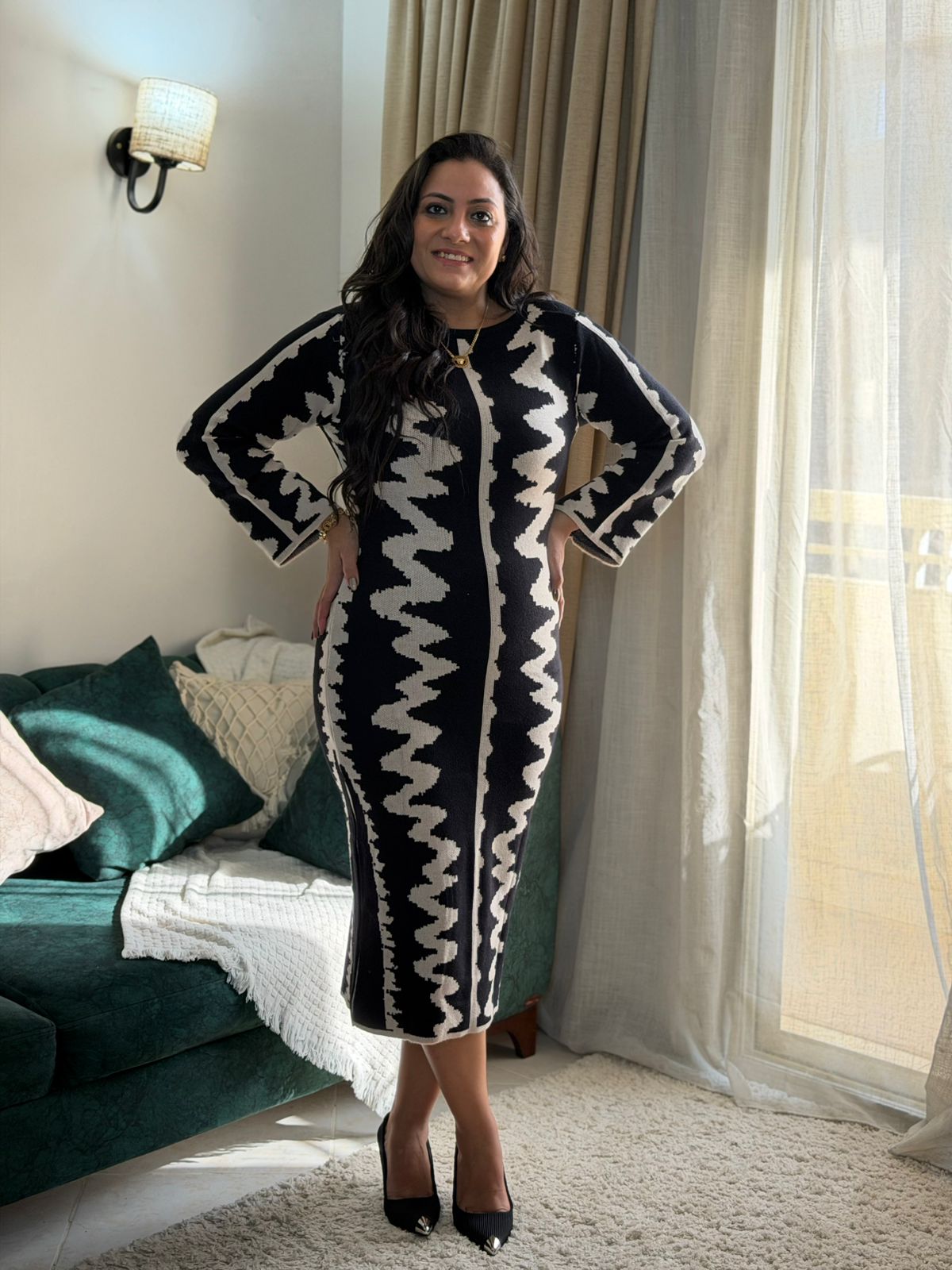 Long Sleeve Zigzag Long Dress