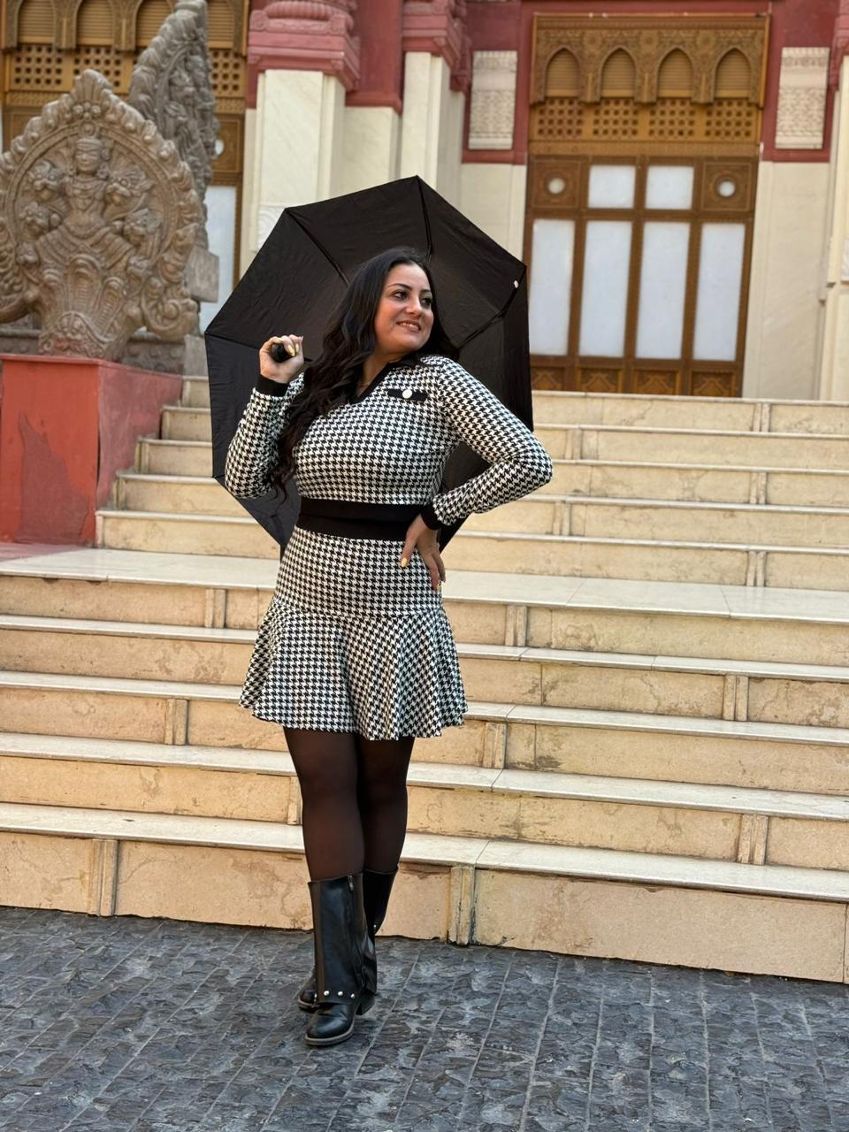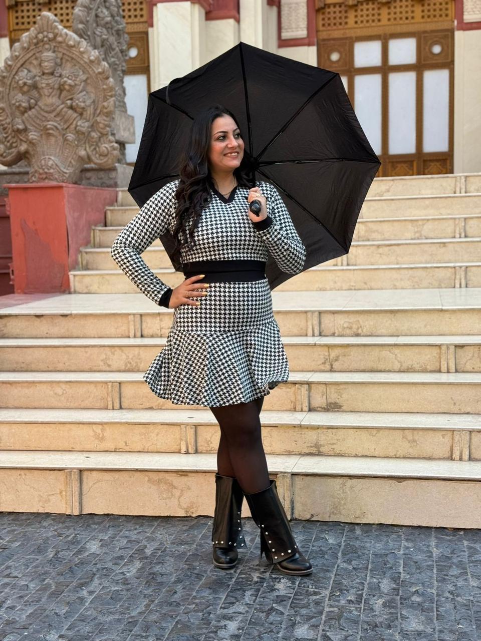 Set Black & White Two Pieces Long Sleeve Top & Short Skirt