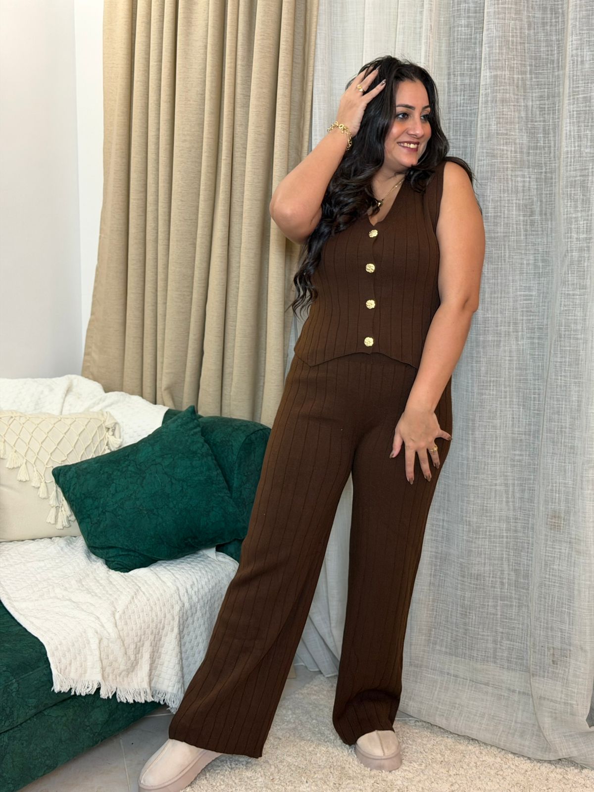 Set Two Pieces Front Buttons Sleeveless Top & Wider Leg Pants