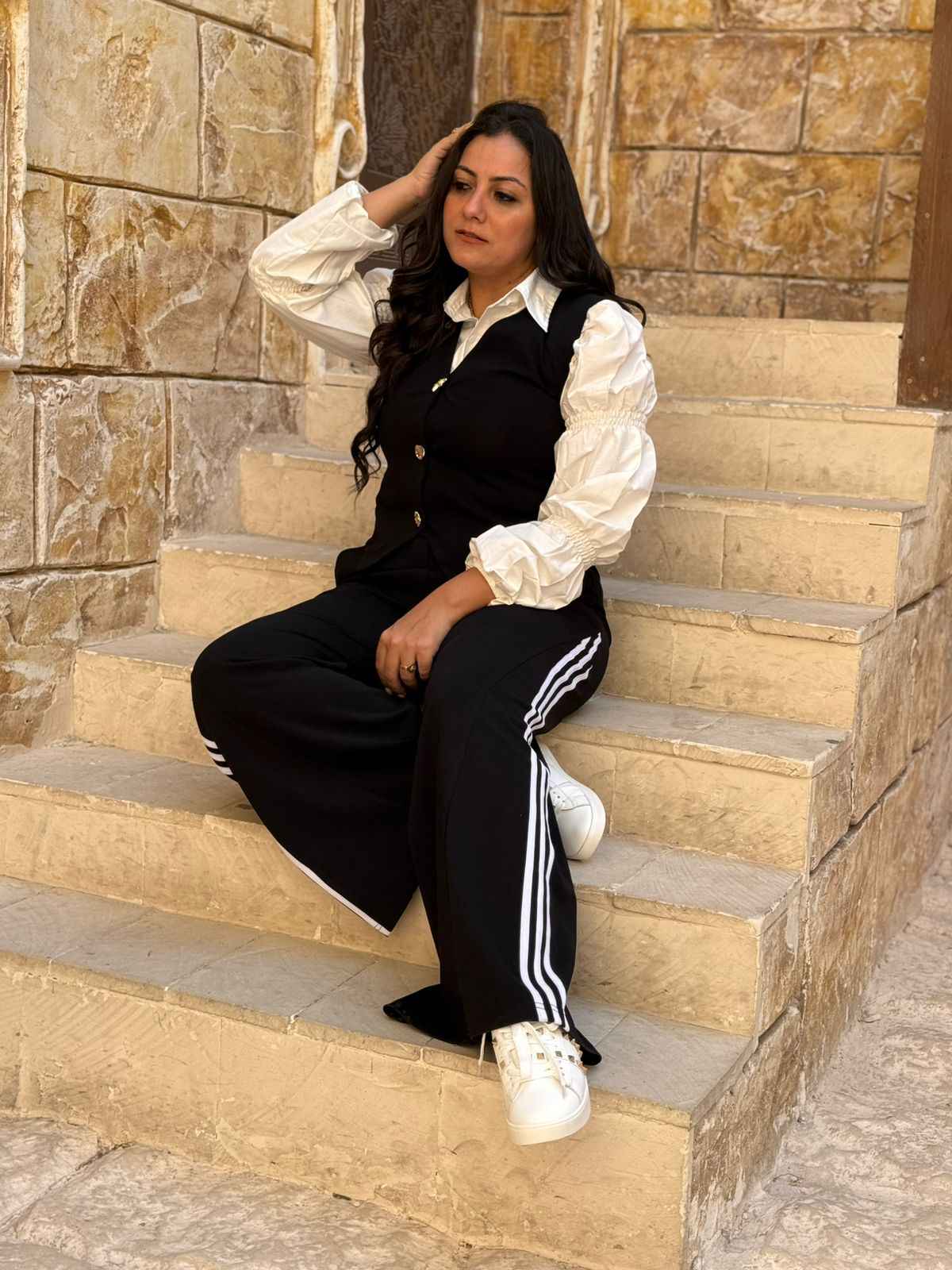 Set Two Pieces Front Buttons Vest & Wide Leg Pants