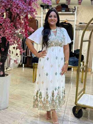 Short Sleeve Embroidery Long Dress