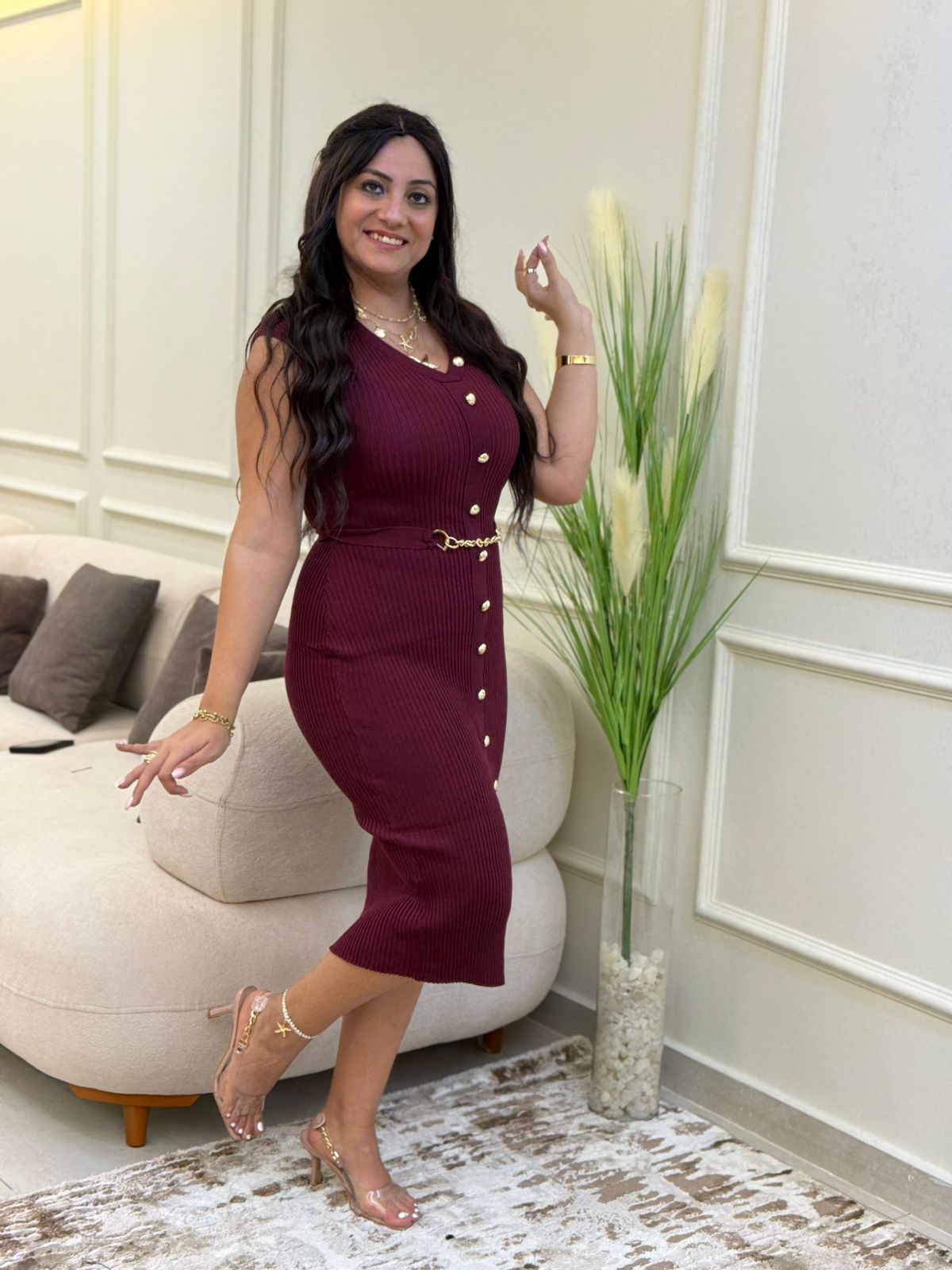 Sleeveless Front Buttons & Chain Dress