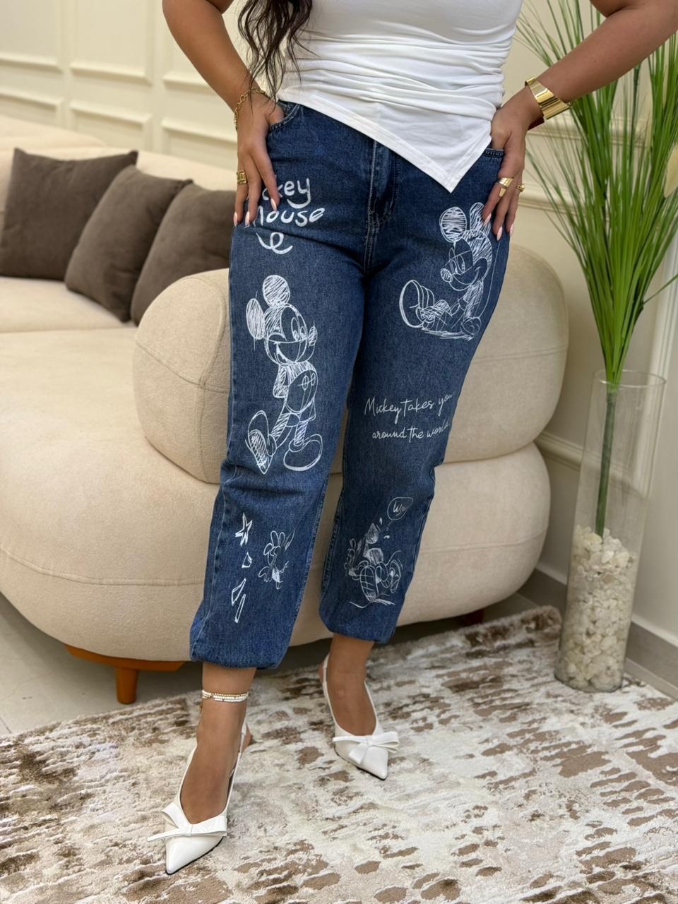 Wide Leg Mickey Mouse Jeans Pants