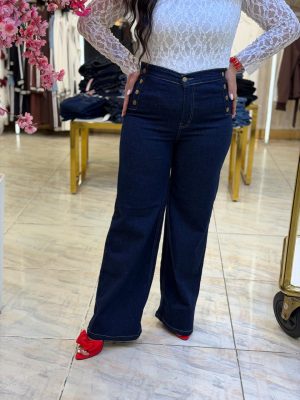 Wide Leg Jeans Pants With Side Buttons